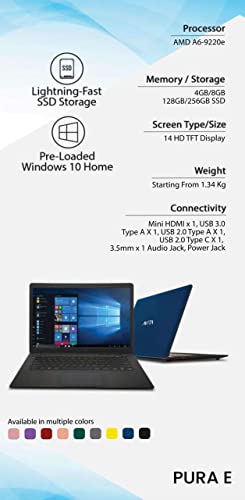 AVITA PURA E14 NS14A6ING541-BYA Thin and Light 14 inches Laptop AMD Radeon R4 (APU Dual Core A6 / 8GB /256 GB SSD / Windows 10 Home) 1.34 kg Butter Yellow