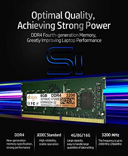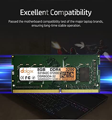 Dolgix 8GB DDR4 3200MHz Laptop/Notebook RAM (Memory) SO-DIMM | PC4-25600, (1Rx8 Single Rank ) 3Years Warranty (Made in India)