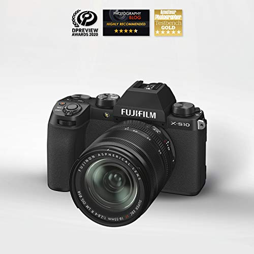 Fujifilm X-S10 Mirrorless Camera Body with XF18-55mm Lens (APS-C X-Trans CMOS 4 Sensor, EVF, IBIS, Vari-Angle LCD Touchscreen, Face/Eye AF, 4K/30P & FHD/240P Video Vlogging, Film Simulations) – Black