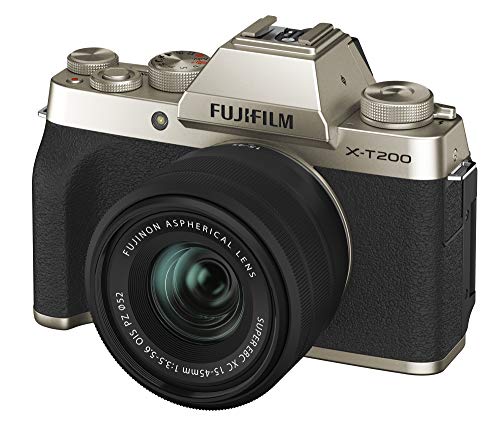 Fujifilm X-T200 24.2 MP Mirrorless Camera with XC 15-45 mm Lens (APS-C Sensor, Electronic Viewfinder, Vari-Angle LCD Touchscreen, Face/Eye AF, 4K Video Vlogging, Film Simulations) – Champagne Gold