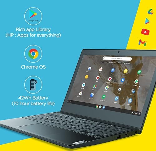 Lenovo IdeaPad Slim 3 Chromebook Intel Celeron N4020 4th Gen 11.6” (29.46cm) HD Thin & Light Laptop (4GB/64GB eMMC/Chrome OS/Upto 10hr Battery/2W x2 HD Speaker/Onyx Black/1.12Kg), 82BA001PHA