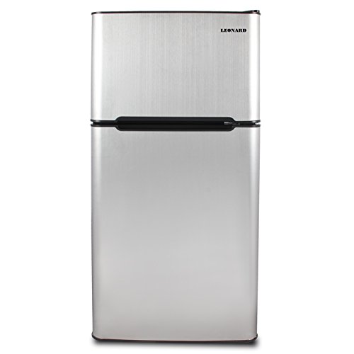 LEONARD USA 120 L Inverter Double Door Mini Fridge with Toughened Adjustable Glass Shelves, Mechanical Control, Interior Light for Room, Home, Office or Bar (Based on American Technology) (Silver & Black, LE-USA-DDIMF, Double Door)