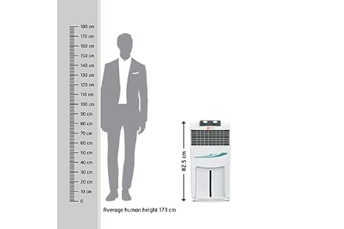 Product Description :- Dimensions (L x B x H): 46 x 34 x 66 cm ; Capacity: 20 Liters ; Ice Chamber ; Honey Comb cooling pads ; Color : White.