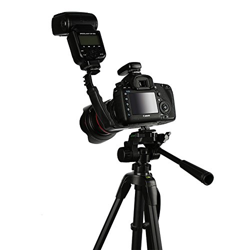 This “L” bracket features two flash shoes, one for shooting with the camera in the standard horizontal position, and one for shooting in the vertical position.